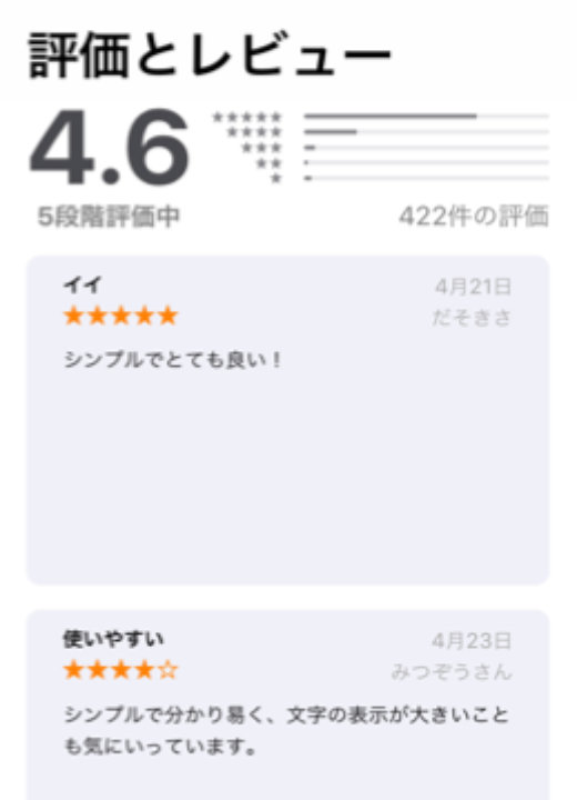 AMaintain first view of user review/comments with ☆4 or higher when you want and as long as you want. Specially stars on first look 3 reviews (PlayStore) & 6 reviews (AppStore) give significant impacts on application conversion (install) rate. Review will be udpated in Japanese language.