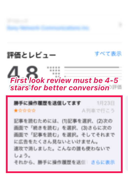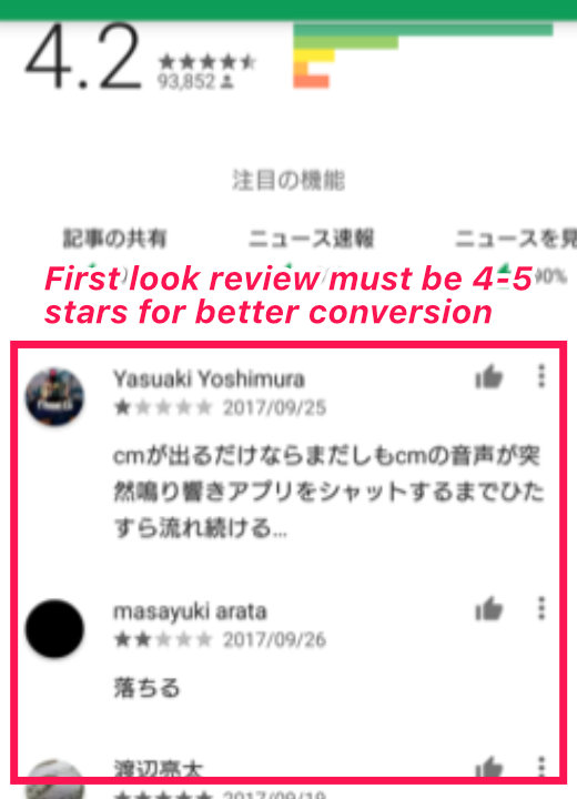 In Japan, many apps in top charts & top - middle developers take advantage of ASO, that is positive review comments and stars.